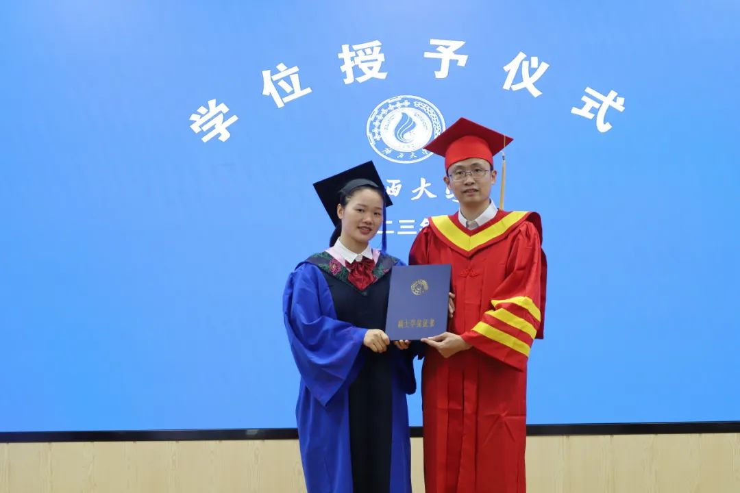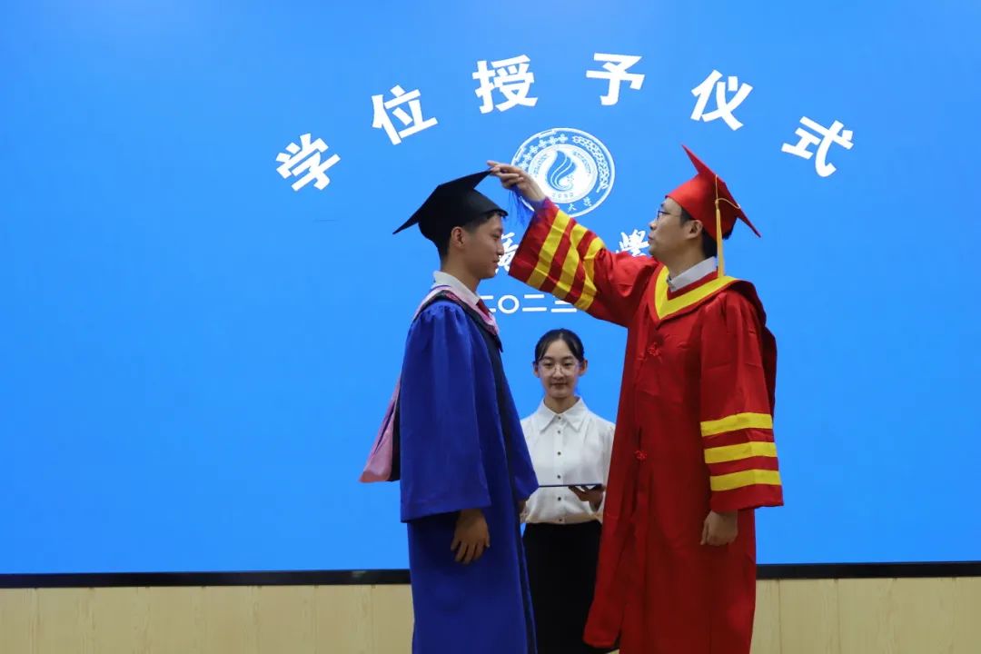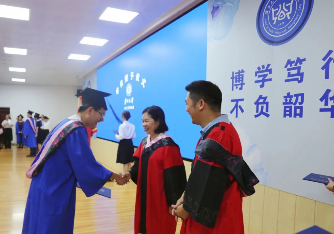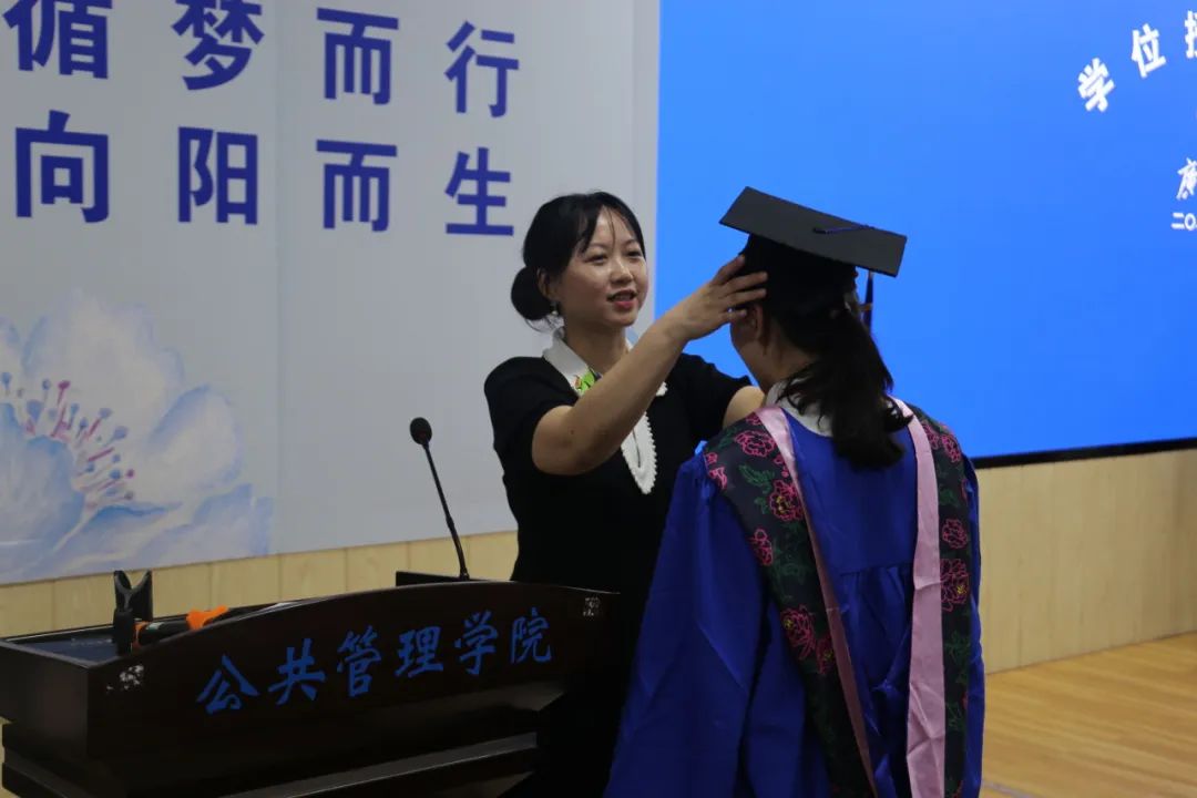 学位授予环节,周均旭宣读学位授予决定,毕业生们随着礼乐声依次上台。毕业班班主任雷文艳、钟革秋为学生整理衣冠,聂鑫为毕业生行拨穗礼,并一一合影,黎昌珍教授与魏万青教授分别和毕业生握手祝贺。最后,在全体师生的校歌大合唱中,MissAVt 公共管理专业硕士(MPA)毕业典礼暨学位授予仪式圆满落幕。
