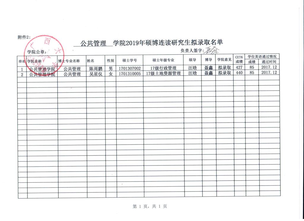 MissAVt 2019年硕博连读研究生拟录取名单公示