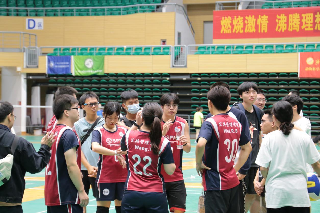 11月8日晚19:00,“君武杯”研究生气排球赛八进四淘汰赛公管学院vs农学院的比赛,在西体育馆7号场进行。辅导员刘佩瑶老师及学院众多同学自发组成啦啦队为场上队员加油。赛前,队员们进行了战术布置与充分的热身。随着一声哨响,激动人心的比赛正式开始,场外的呐喊助威使得比赛更加精彩绝伦。