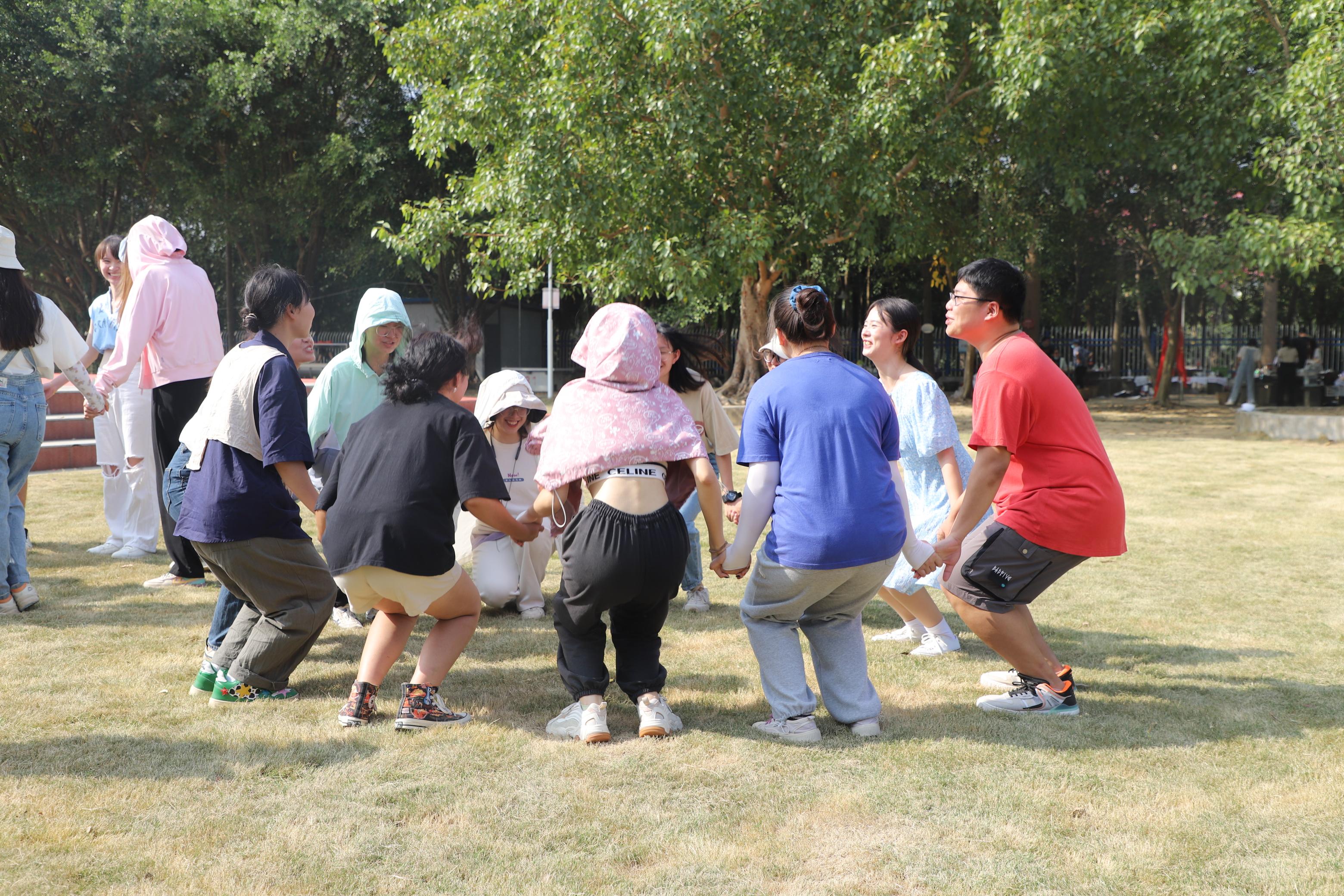 “摸鼻转圈往返接力”、“萝卜蹲”、“一元五角”。游戏开始后,现场气氛火热,有趣的游戏增进了彼此间的友谊,在小组合作中促进了集体团结。