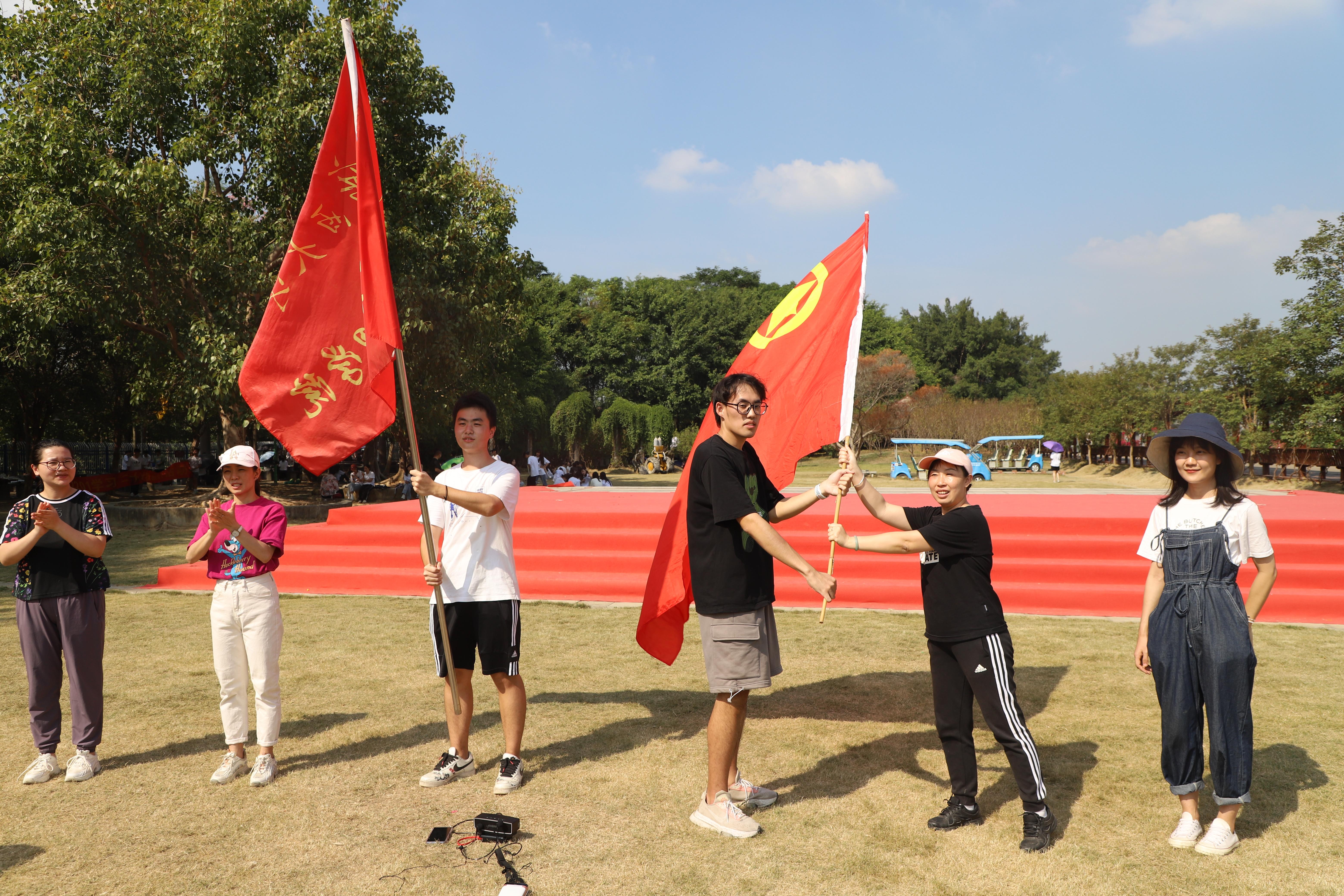 迎风飘扬的团旗与院旗,承载着团委、学生会一代又一代学生干部服务同学,无私奉献,砥砺前行的光辉历史与辉煌成就。接过团旗的那一刻,我感受到了沉甸甸的责任落在肩上,感受到了学长学姐对于我们的殷切希望与嘱托。薪火代代传,当旗帜交到我们手中的时候,我们同样要用奉献与担当,交出一份令人满意的答卷,躬耕不辍,行路不止。