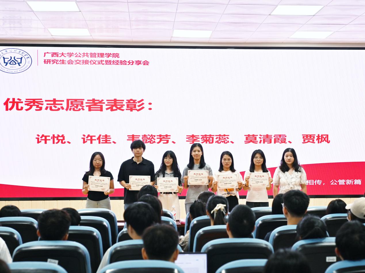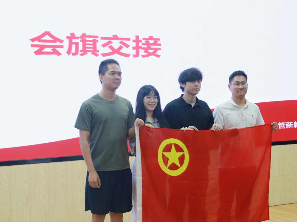 随后是会旗交接仪式,22届主席团成员向23届主席团成员交接了会旗,这象征着公管学院精神与文化的一次深刻传承,寓意着新一届研究生会将继承前辈们的优良传统,继续秉承“博学、笃行”的院训精神,以更加饱满的热情和更加坚定的步伐,推动学院各项工作再上新台阶。活动最后,全体合影留念。