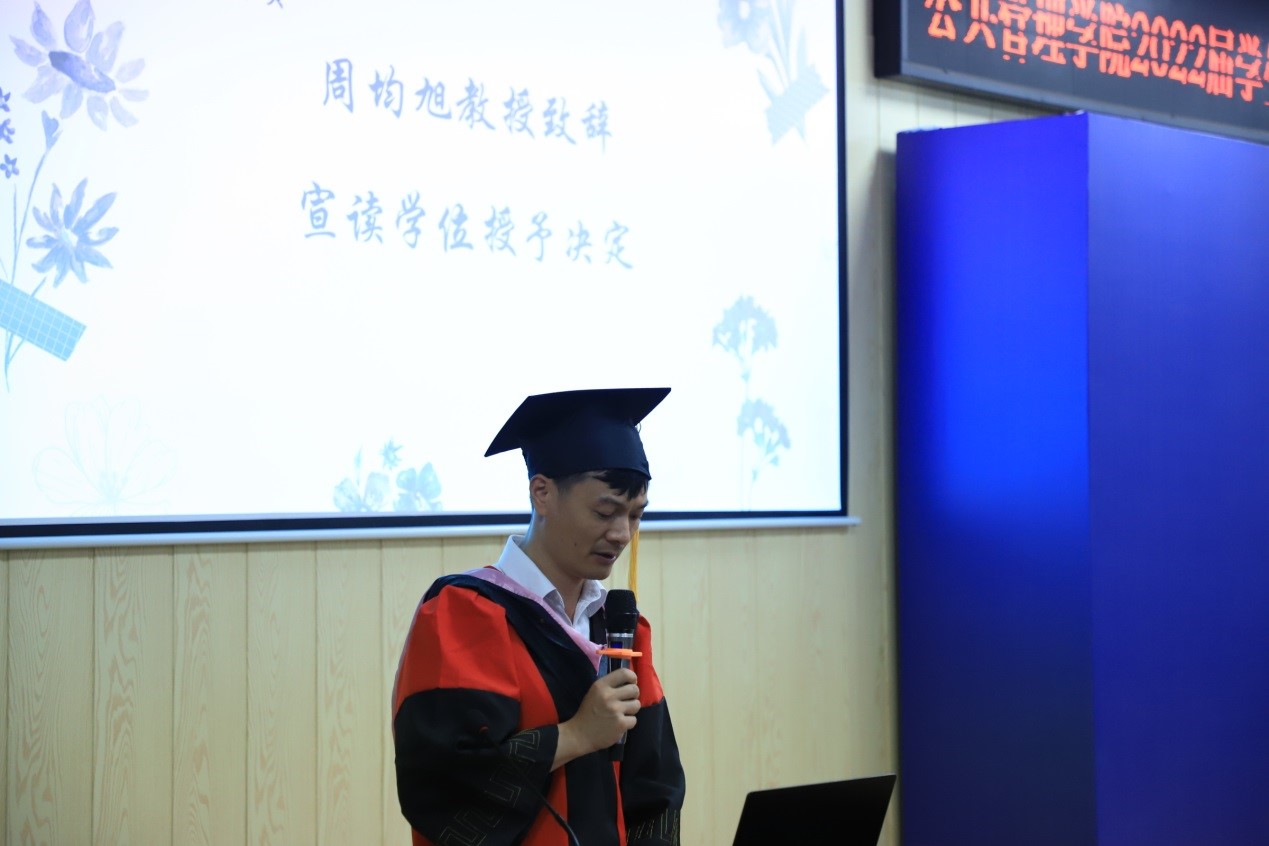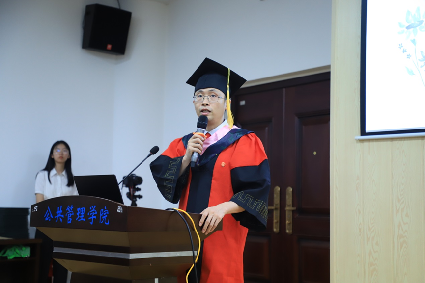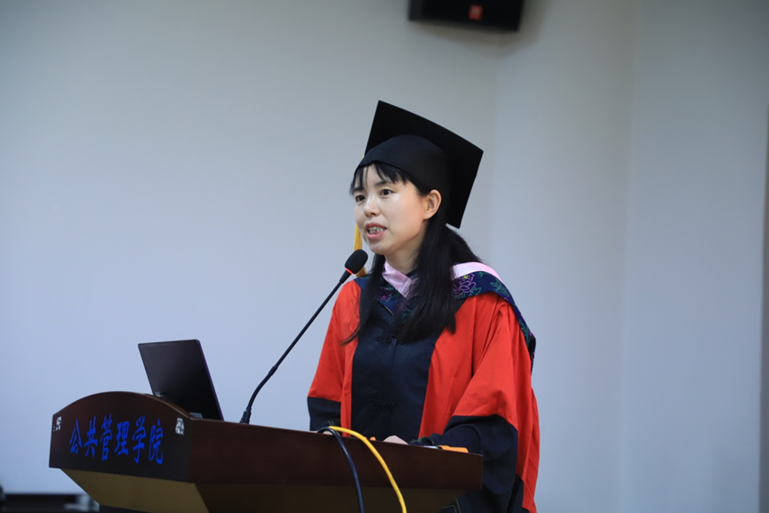 教师代表李小红副教授、学硕毕业生代表蒋文倩、专硕毕业生代表言天磊、本科生毕业生代表文颖、及在校生代表唐正昌上台发言。李小红首先向同学们道一声感谢,MissAVt 公共管理事业管理专业在2022年软科中国大学专业排名的提升离不开师生的共同努力。其次祝贺同学们顺利毕业,取得阶段性圆满。在进入下一阶段之前,可能会存在激动、期待、紧张和无措的情绪,但是希望大家能在当下细细回想老师、同学们的教导与陪伴,这些将会是你们不惧困难的力量。李小红以浙江大学高中山教授的经历告诉我们在学术追求的道路上,不应仅仅只有爱好和喜欢,更多的是要责任和担当。希望我们每个公管人在日后的工作和学习中,都能挑起重担,在面临困难时都能够坚持不懈。同时也欢迎同学们在想念母校的时候,能够常回母校看看,老师们也会想念大家。