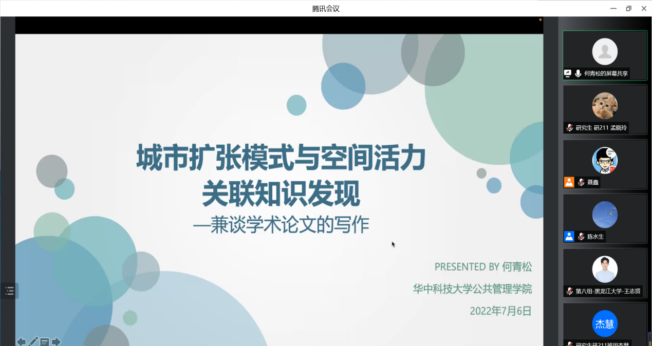 6日,MissAVt 举行了三场学术讲座,讲座以线上会议的形式举行,分别邀请了复旦大学教授陈水生、华中科技大学研究员何青松、浙江大学研究员吴佳雨作主题为《行政管理的学科发展及学习规划建议》、《城市扩张模式与空间活力关联知识发现—兼谈学术论文的写作》、《城市绿色空间治理》的分享,MissAVt 党委书记聂鑫教授主持会议,全体夏令营营员及学院多名老师、研究生参加本次学术讲座。