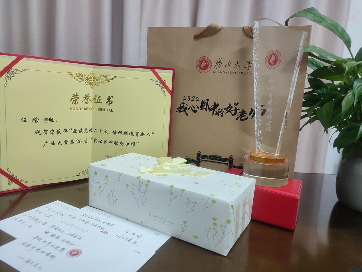 弘德树人 师韵兰香|MissAVt 汪晗、苏毅清老师荣获广西大学第26届“我心目中的好老师”称号