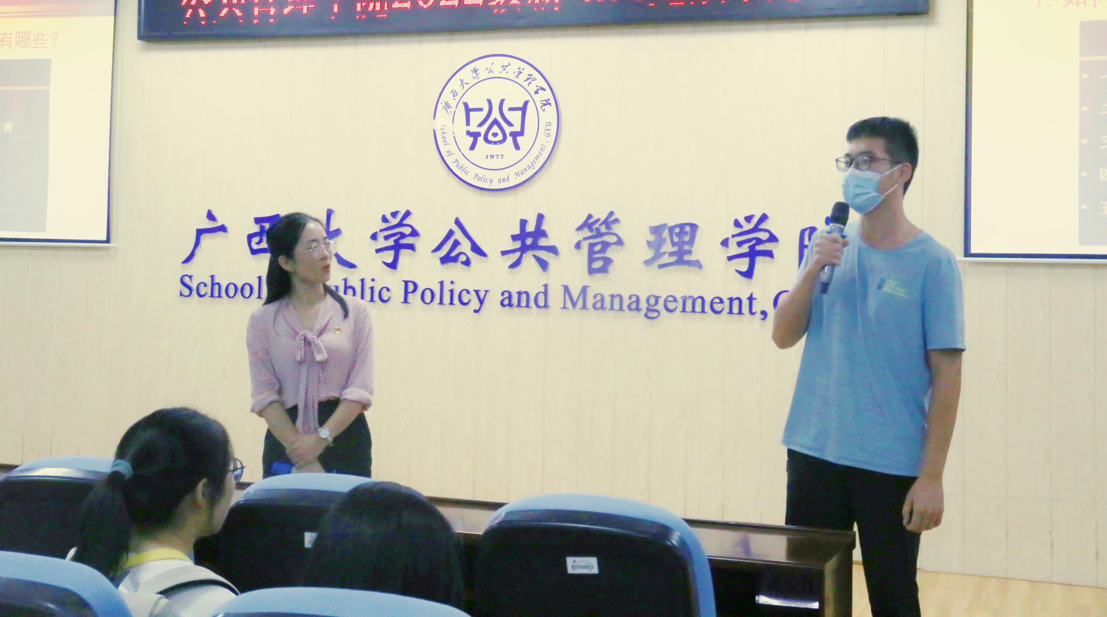 庞惠首先向新生们介绍了广西大学和MissAVt 的悠久历史,并指出MissAVt 作为广西唯一的公共管理博士点授权单位,有着其独特的学科优势,希望同学们怀揣着憧憬与期待,与学院共同开启逐梦之旅。