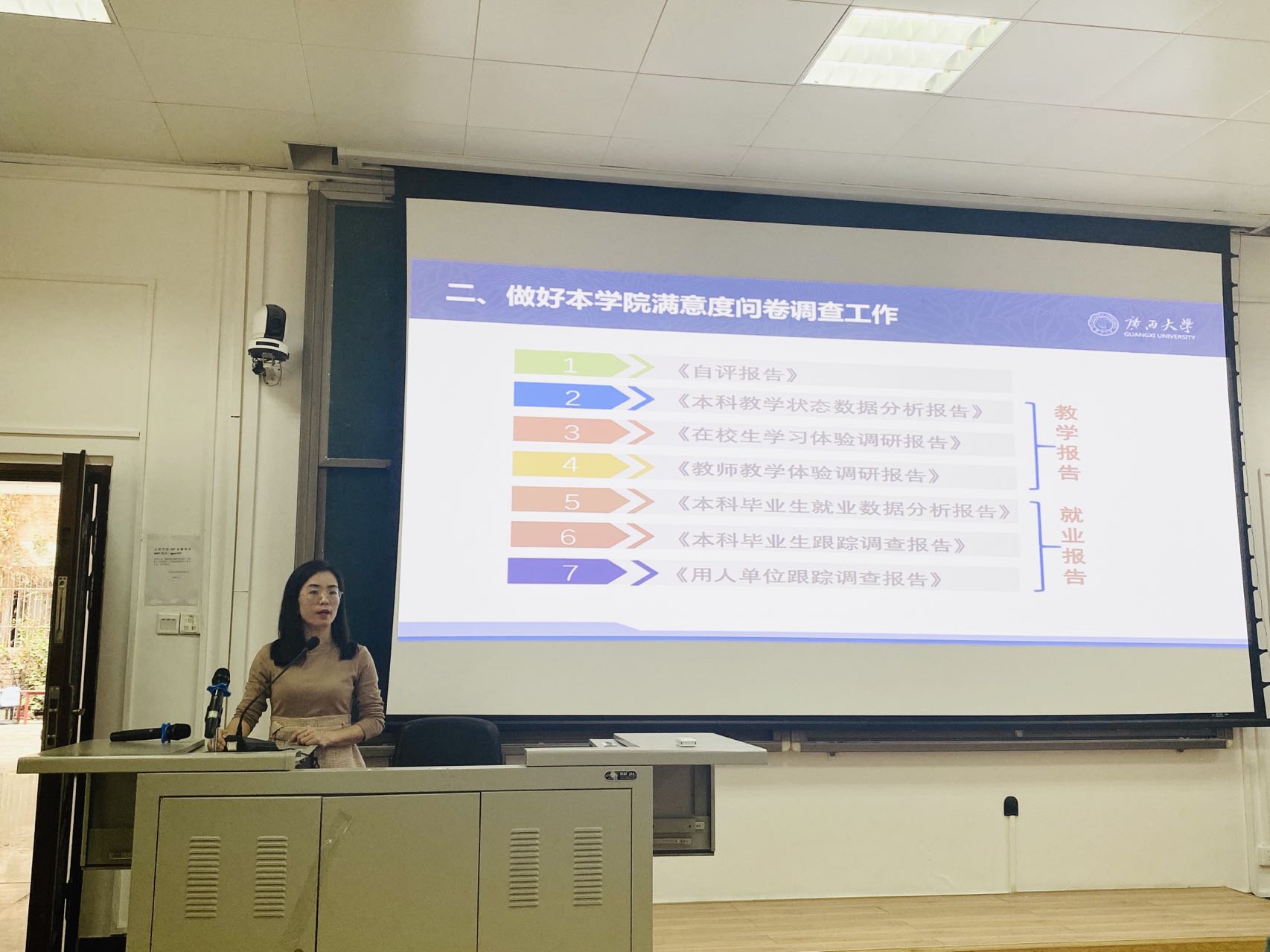 庞惠副书记从调查问卷、材料提交、访谈工作、听课工作、档案调阅等七方面作详细的部署。她强调全院教职工要思想上高度重视绷紧弦,行动上落实深化拉满弓,责任上全面压实落到点。