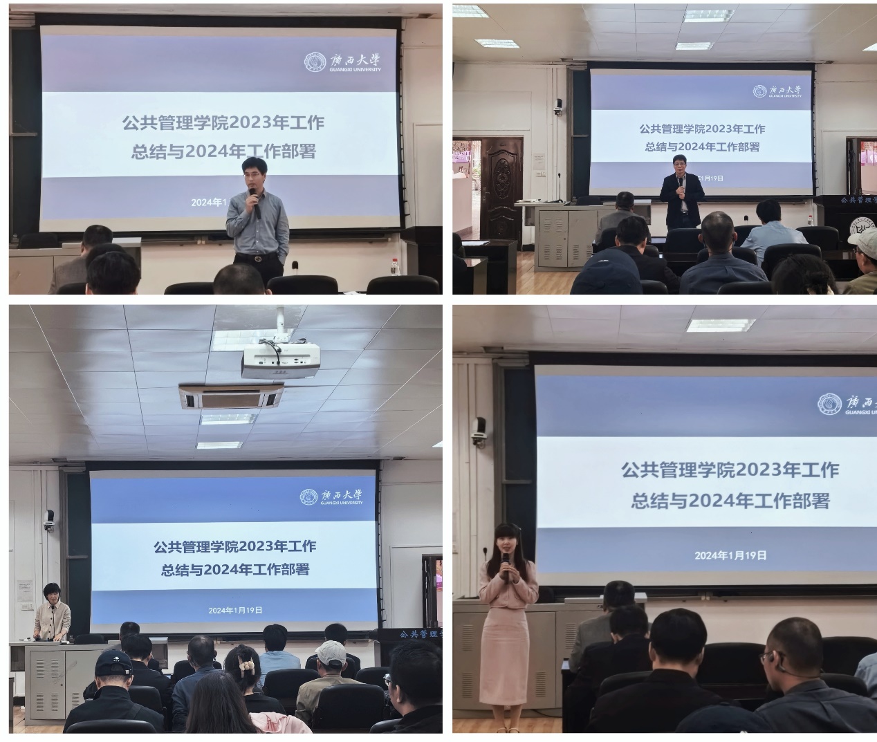 学院院长史云贵代表学院领导班子作2023年学院工作总结和2024年学院工作部署。史云贵院长从学科建设、人才引进、教学科研等方面全面总结了学院2023年取得的成绩。他表示:过去一年,在学校党委行政的关心和领导下,通过全体教职员工的辛勤付出,学院的各项事业取得了长足进步。新的一年,学院将以学科建设为龙头,进一步完善院系管理体系和办学环境,加大人才内培外引的力度,为实现学院内涵式高质量发展而不懈奋斗!