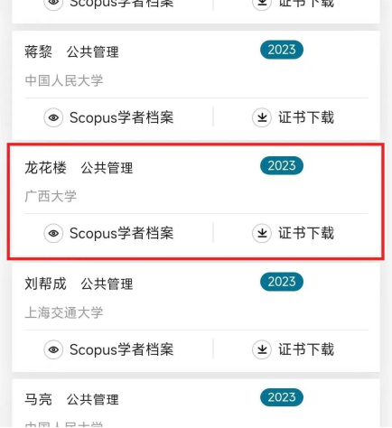图|2023年爱思唯尔中国高被引学者部分榜单(公共管理)