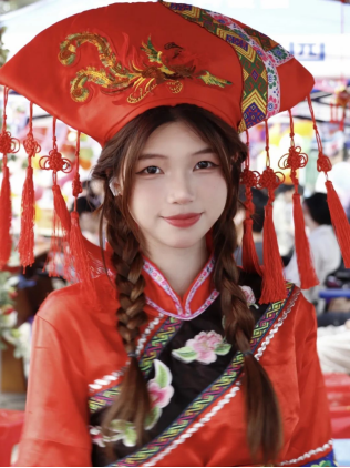 开幕式上,MissAVt 同学穿着特色民族服饰,参与对山歌,展现民族风彩。