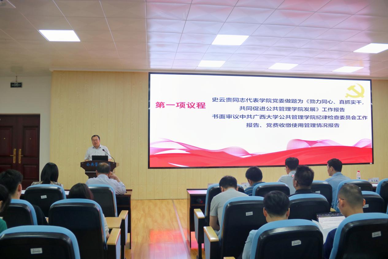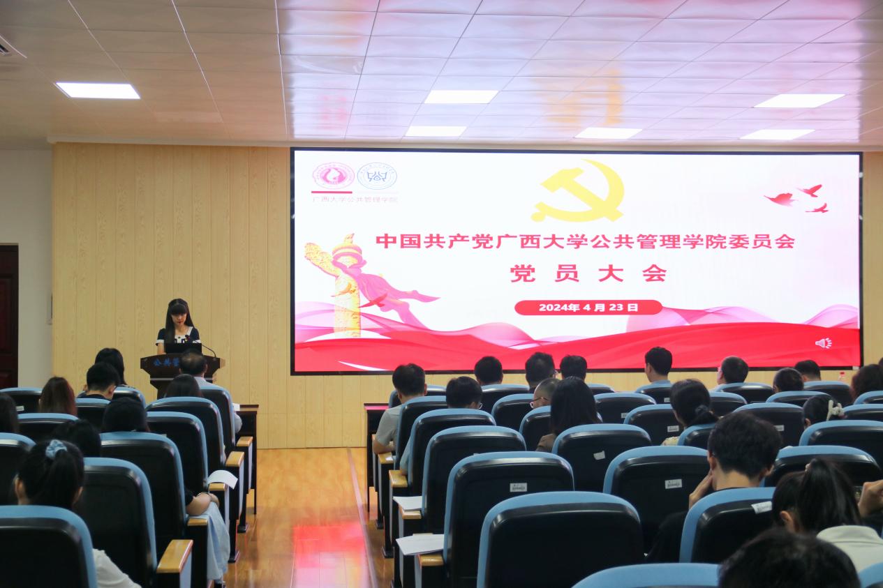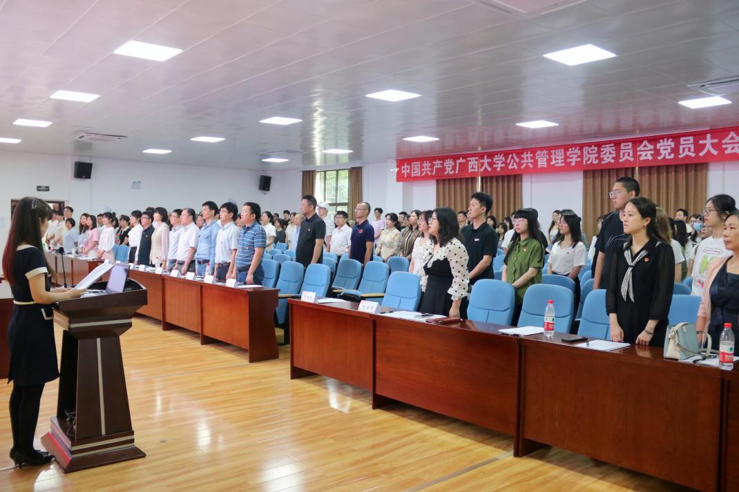 大会在国歌声中拉开帷幕。院党委副书记、院长史云贵代表学院党委作题为《勠力同心、真抓实干,共同促进MissAVt 发展》的报告,报告从基层党建、学科建设、人才培养、科学研究等方面全面回顾学院党委过去五年的工作。五年来,学院党委紧紧围绕学校中心工作,加快推进学院和学科高质量发展。学院获批首批新时代广西高校党建工作标杆院系,基层党建“作业本”运行机制获得学校和自治区主管部门的高度认可;在院系结构上,打造了“四系-两院-一中心”的学院治理结构;在学科特色品牌建设上,打造了西大公共管理学科的“绿色”品牌,在学界具有了一定的影响力。