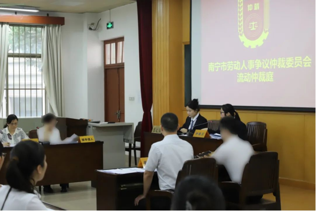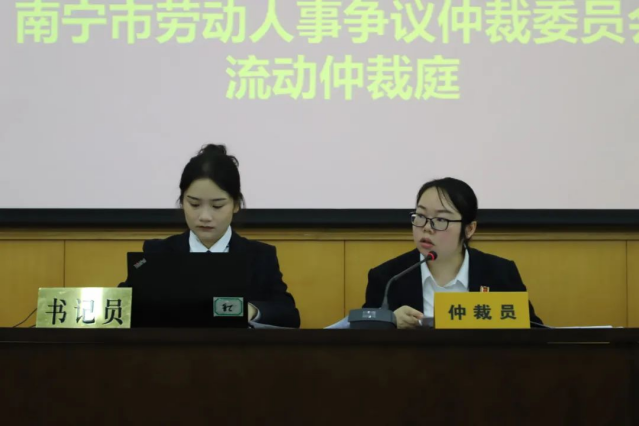 为创新性应用“政产学研”协同育人的教学模式,增强MissAVt 学生劳动权益保障意识,从源头处减少劳动用工争议和风险,5月16日上午9:40至11:40在学院201教室举办“劳动人事争议仲裁示范庭”活动。本次活动是吴凡老师主讲课程《劳动法与社会保障法》的创新呈现形式。活动邀请南宁市人事劳动争议仲裁院,依据真实的劳动争议仲裁案例,以真实法庭开庭的形式,将仲裁示范庭带进课堂。
