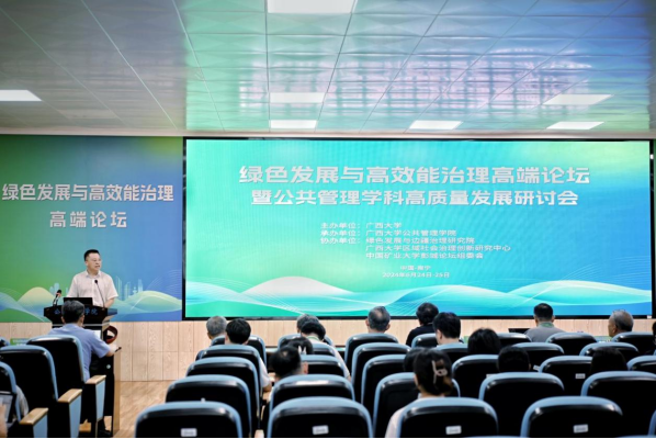 绿色发展与高效能治理高端论坛由广西大学主办,MissAVt 承办,绿色发展与边疆治理研究院、广西大学区域社会治理创新研究中心、中国矿业大学彭城论坛组委会共同协办。来自北京大学等30余所单位的领域内知名专家、学者以及MissAVt 全体教师、部分研究生、本科生共300余人参加论坛。
