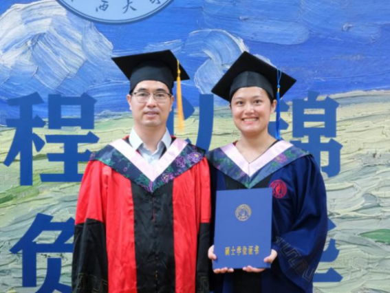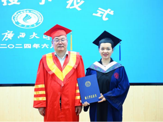 毕业生代表周冲表示,在紧张的社会生活中找到学习节奏是每位非全日制学生的必修课,并以广西大学校训“勤恳朴诚、厚学致新”和MissAVt 院训“博学笃行”为指导,鼓励毕业生们在未来的道路上永怀希望、不惧困阻,继续为实现“复兴中华、发达广西”的目标而努力。