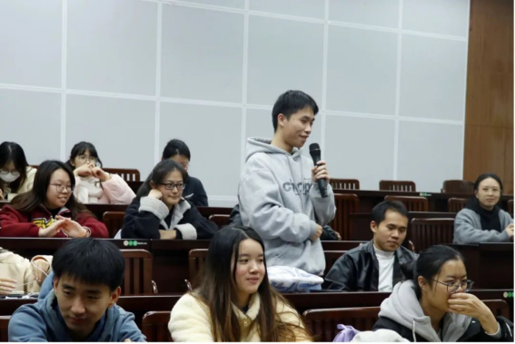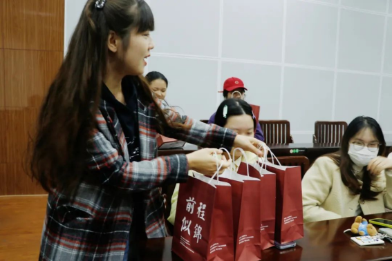 “击鼓传花”小游戏给考研学子放松解压,鼓声停时,拿到公管文创公仔“小管”的同学起身,表达备考心情,送出考研祝福,鼓励彼此携手共进,共同“上岸”。
