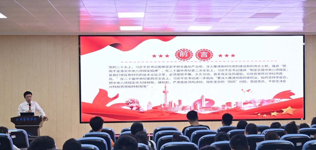 为深入贯彻落实全面从严治党要求,进一步加强党的作风建设,5月28日下午,MissAVt 党委书记聂鑫在203教室为学生党员代表讲授深入贯彻中央八项规定精神学习教育专题党课。