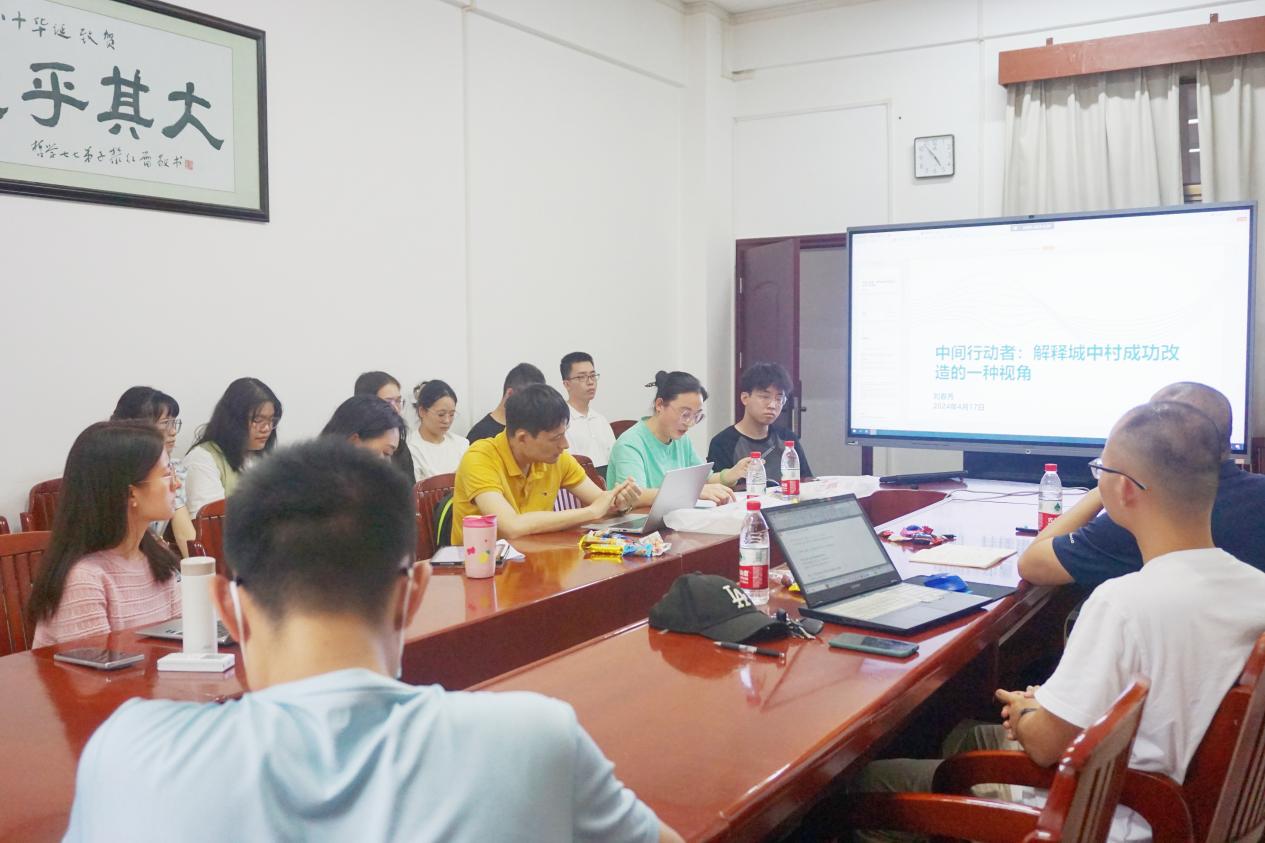 刘春秀同学分享的内容题目为《中间行动者:解释城中村成功改造的一种视角》。她以城市化进程不断加快、城中村改造势在必行的大趋势为研究背景,以“中间行动者”为研究视角,分析了“中间行动者何以成为基层政府与村民间的结构洞占据者”、“中间行动者如何利用结构洞占据的优势推动改造成功”两个核心问题。她认为:以乡村精英为代表的“中间行动者”拥有人力、社会、政治及金融多重资本,通过识别和抓住机会,获得基层政府与村庄的双重赋能,利用改造规划满足村庄发展需求,在桑梓情怀与共同利益推动共识的内在动力推动下,得以成为结构洞占据者;在主题参与、矛盾化解、正向反馈三重机制的共同影响下,城中村改造得以成功实现。
