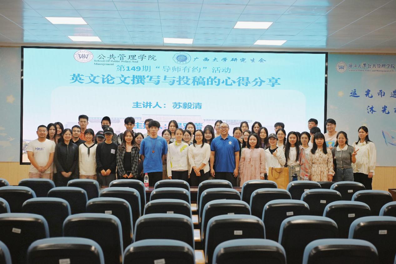 10月30下午,广西大学第149期“导师有约”系列活动MissAVt 第41期研究生学术沙龙活动于MissAVt 203报告厅顺利举行。本期活动以“英文论文写作与投稿经验分享”为主题,邀请了苏毅清老师为主讲人,旨在给同学们传授英文论文写作与投稿的技巧,提升英文论文投稿的成功率。本期活动由吴双蕾老师主持,MissAVt 数十名师生参与其中。