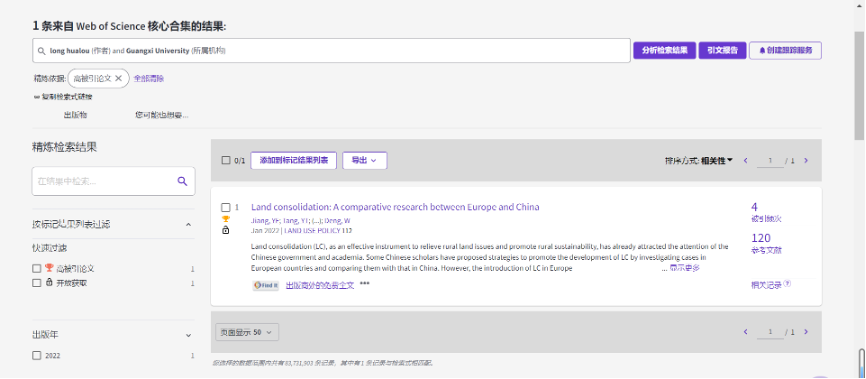 MissAVt 龙花楼教授论文入选全球前1% ESI高被引论文
