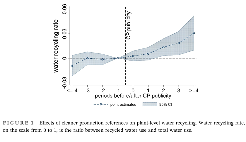 随后,论文实证检验了清洁生产标准这一基于规范的政策工具对企业循环用水行为的影响。20世纪80-90年代,联合国积极倡导清洁生产理念,1992年清洁生产被写入21世纪议程,逐渐形成一种在全球传播的规范。20世纪90年代,清洁生产规范引入我国,在21世纪初,发改委、环境部发布了一系列非强制的清洁生产标准,将其制度化,构建了基于规范的政策工具,为企业可持续行为提供了指引。