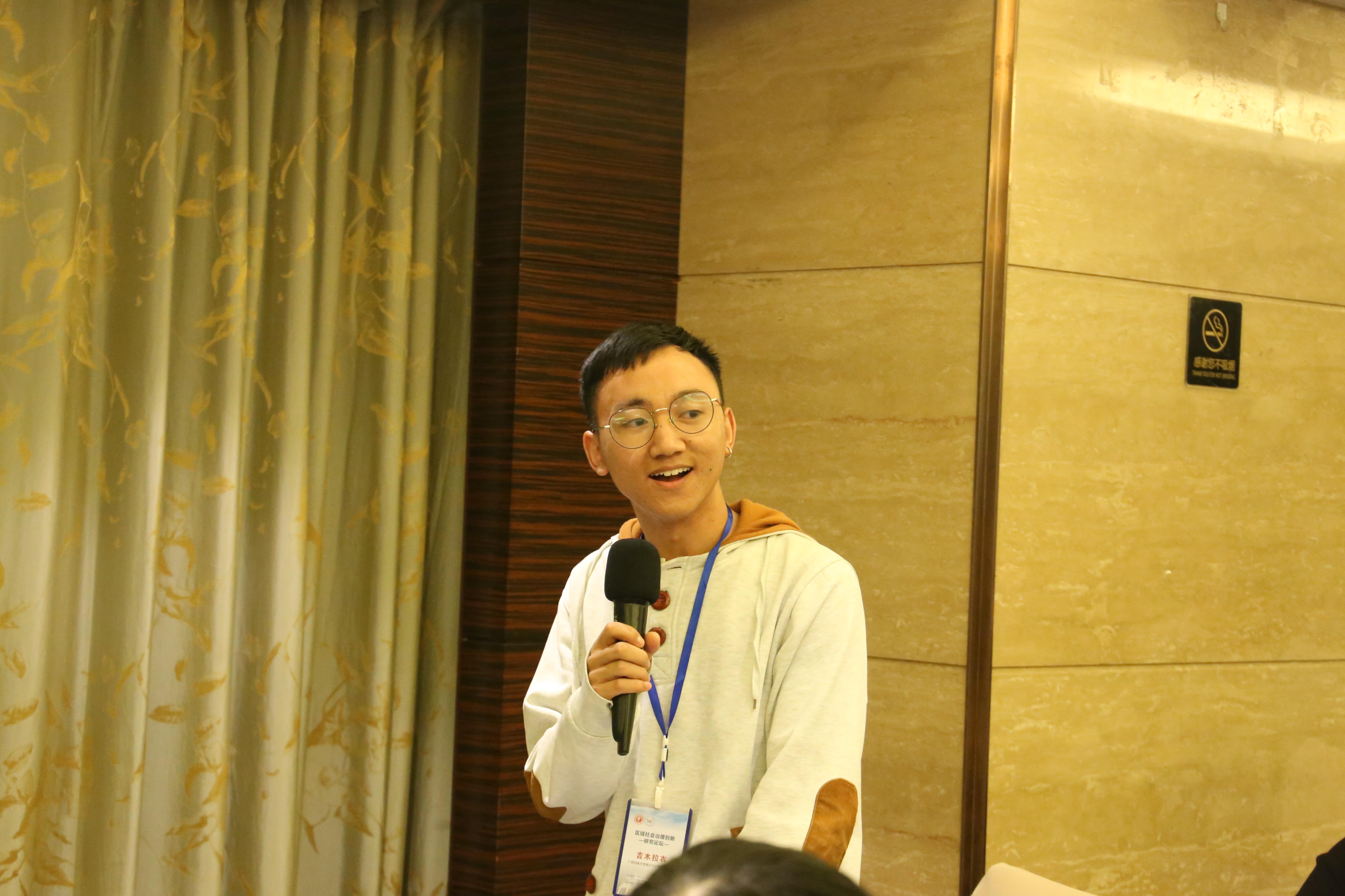 第五场主题发言由中南民族大学吴开松教授主持。MissAVt 缑文学副教授、苏毅清助理教授和周文栋教授分别作主题发言。缑文学教授从广西农村空心化问题的背景、现状、特征、机制、问题和后果等几个方面论述了广西农村空心化问题的特征及形成机制;苏毅清教授以社会生态系统(SES)框架为基础,将SES框架纵向分解,以灌溉系统治理为例讨论农地确权对农村公共治理的影响;周文栋教授结合自身在广西14个地市调研的经历,对留守儿童保护视阀下社会组织参与基层社会治理的路径进行了探究。下午的三场主题发言结束后,各位专家学者与在场师生对公共事务治理、乡村振兴是否与新型城镇化发展要求冲突等方面问题进行了交流与探讨,现场气氛热烈。