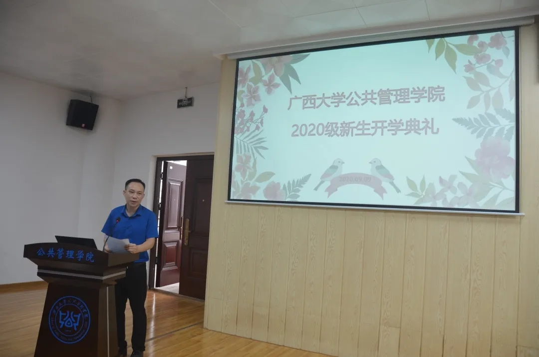 9月8日上午十点半,MissAVt 2020级新生开学典礼在学院203教室隆重举行。院党委书记聂鑫教授、院长郑方辉教授、院党委副书记甘武琳、副院长周均旭教授、副院长魏万青教授、副院长黄宏伟老师、公共管理系主任黎昌珍教授等党政领导班子及教师代表出席仪式。