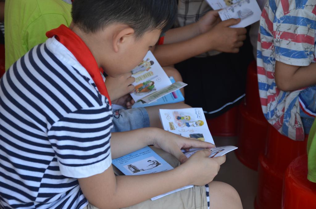 随后,志愿者们还向小朋友们发放了《安全教育手册》以及举办了有奖竞答活动,使小朋友们在竞答中巩固了刚才所学的防溺水知识,在小朋友们的踊跃答题中,志愿者手中的礼品也尽数散去,看到他们都能正确回答问题,志愿者们都表示十分开心。