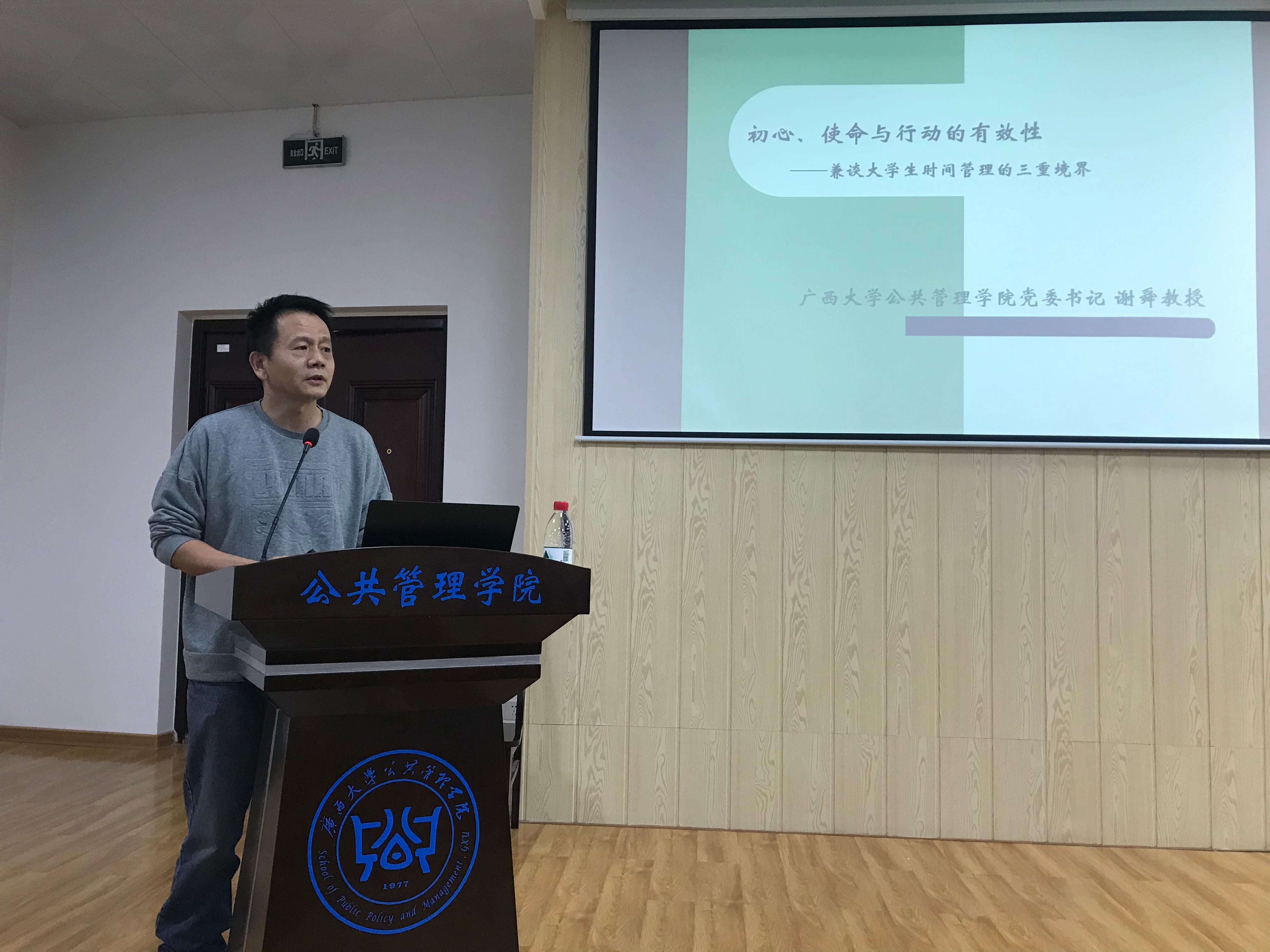 11月27日下午,以“初心、行动与行动的有效性——兼谈大学生对时间管理的三重境界”为题,讲授“不忘初心、牢记使命”专题党课在MissAVt 顺利开展。此次党课由MissAVt 党委书记谢舜同志主讲、党委副书记甘武琳同志主持,授课对象为MissAVt 全部学生党员同志,同时参加党课的还有MissAVt 副院长黄宏伟同志、教师代表刘佩瑶同志。