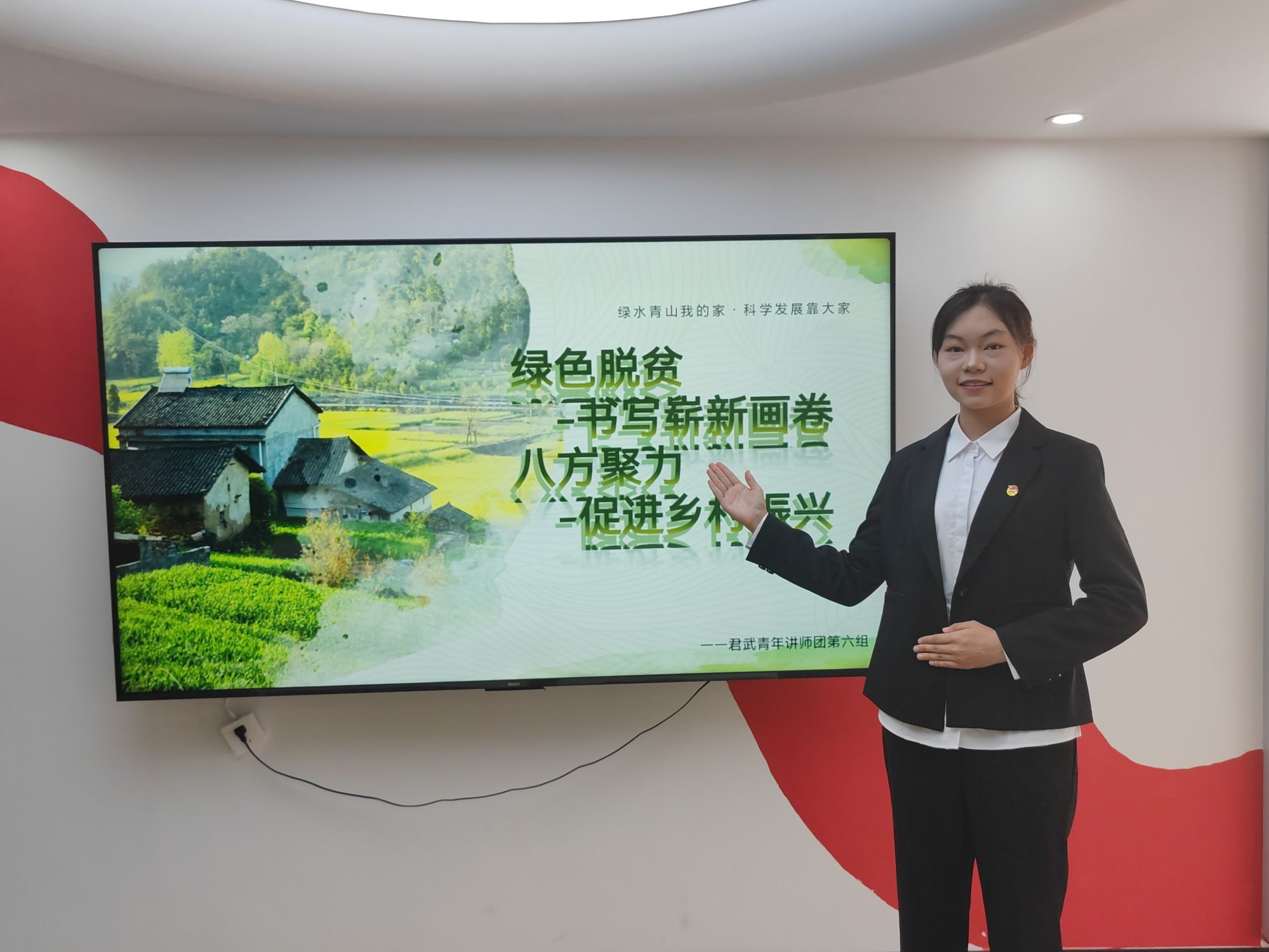 龚芯沅从乡村新面貌-走进山水田园、小康新画卷-赋能电商经济、八方聚力-促进乡村振兴三个维度深入剖析乡村振兴之路,透过案例精讲使党员同志们深刻理解绿色发展与乡村振兴相结合的战略意义与实践路径。