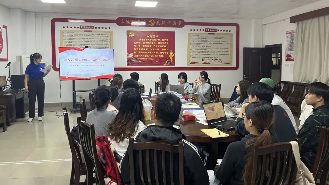 为深入学习贯彻党的二十届四中全会精神,准确把握 “十五五” 规划宏伟蓝图,切实把支部党员的思想和行动统一到党中央决策部署上,10月24日晚上19时,MissAVt 本科第三党支部组织全体党员开展 “学先辈精神汲取奋进力量,悟全会精神书写青春答卷” 主题党日活动。支部党员齐聚一堂,共同学习领会全会核心要义,凝聚奋进力量。本科第三党支部书记陈科旭出席活动,全体学生党员参加本次活动。