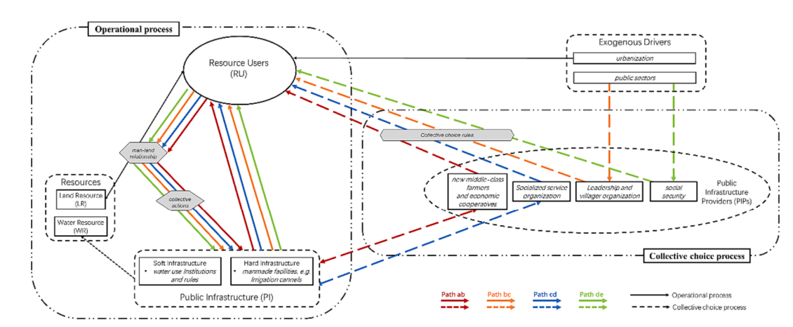 In this paper, the interaction between operational rules and collective choice rules is introduced as a theoretical lens in the analysis of socio-ecological systems, shedding light on the underlying mechanisms that help maintain the robustness of rural socio-ecological systems under urbanization pressures. This work enriches the understanding of rural development and governance patterns in the context of urbanization. The paper’s analysis of the interaction between operational and collective choice processes within rural socio-ecological systems highlights the need for effective governance that coordinates both internal and external forces to drive sustainable rural development. These findings offer valuable policy recommendations for the practice of rural revitalization.